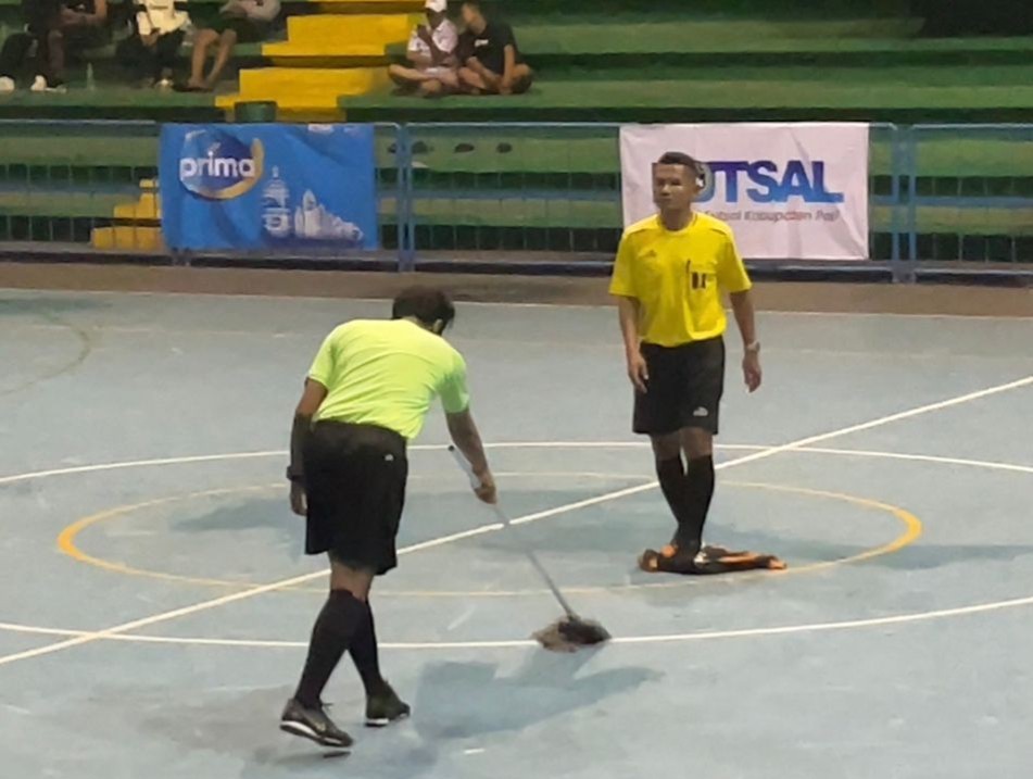 Peristiwa tersebut menjadi sorotan setelah sebuah video diunggah akun Instagram lensabola.sports. Dalam video itu terlihat seorang wasit sedang membersihkan air yang menggenang di lantai lapangan akibat tetesan air dari atap gedung.